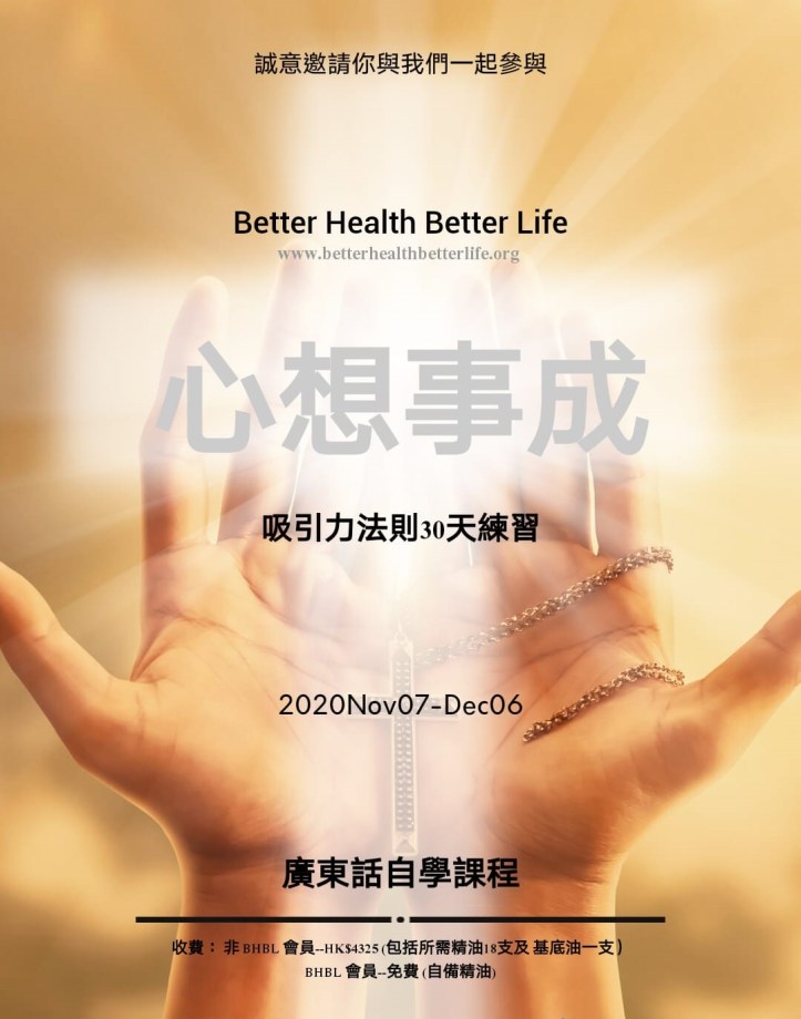 Jojo: 30 日前,應該係我呢幾年來心情最沉重嘅時候,原因係六年級嘅哥哥派咗數學卷,半級以上嘅同學都只得 C grade 或以下,哥哥亦不例外,原本打算報名的中學一時間變得沒有把握,頭痛左兩日,於是我就係帶住負能量嚟到呢個吸引力法則30天訓練。第一日,搽晒要查嘅油,去咗海洋公園,曬曬太陽,望住過海,突然間覺得全個人都輕咗,頭不痛了,當刻感覺好不可思議。接着下來的10天,不斷學習控制自己的情緒,有時成功,有時失敗,失敗咗下次再來。每天早上由原本要睇住notes去搽油,到諗都唔使諗拎起支油就係咁搽,揸呢一堆油已成為左我生活習慣。的而且確,我感受到正能量帶俾我跟以前不同的感覺。首先,我發覺冇咁容易俾人激親,好像冇以前咁執着。對於哥哥選中學的問題,突然間開懷了,因為我相信佢最後會入到一間最適合佢嘅學校。然後寫自己嘅目標50次,以前的我可能諗都唔敢諗,但一邊寫的時候,竟然有幾個朋友主動找我入會,我感覺到離這個目標越嚟越近。我發現,開心同唔開心取決於自己的心態,一味自己喺度鑽牛角尖等如要同自己過唔去,唔開心又傷身。心態上改變咗同時多咗好多預計唔到嘅好事發生。即使中途成個精油包唔見咗,好似係對我嘅一個考驗咁,很神奇地我竟然唔係好在意,開個晒啲新精油又繼續每日搽油。去到前兩日派成績表,竟然收到兩兄弟成績大躍進(除咗哥哥數學)嘅消息。今日第30日我個精油包失而復得,真的很感恩。