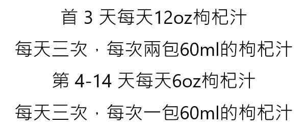 我每天都有喝寧夏汁,並在一天中的一餐加入一匙寧夏綠。