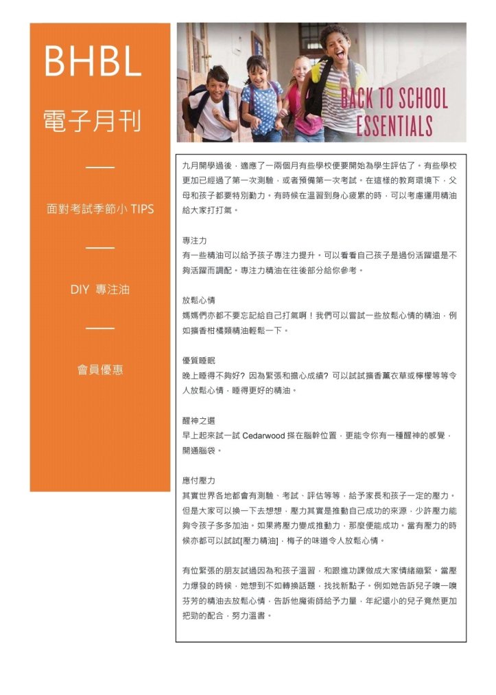 九月開學過後,適應了一兩個月有些學校便要開始為學生評估了。有些學校更加已經過了第一次測驗,或者預備第一次考試。在這樣的教育環境下,父母和孩子都要特別勤力。有時候在溫習到身心疲累的時,可以考慮運用精油給大家打打氣。