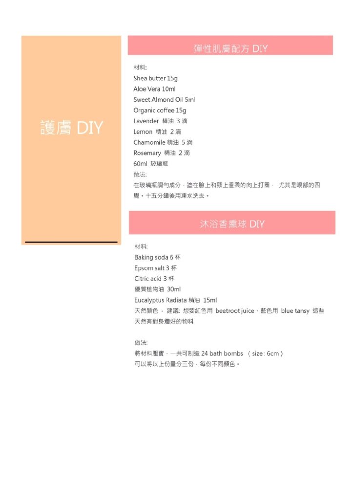 DIY 的護膚用品,自己做,一定知道成份;自己用,一定會找有益無害的。護膚之餘,最後會送上一個杞子汁軟糖給你的最愛在佳節分享。