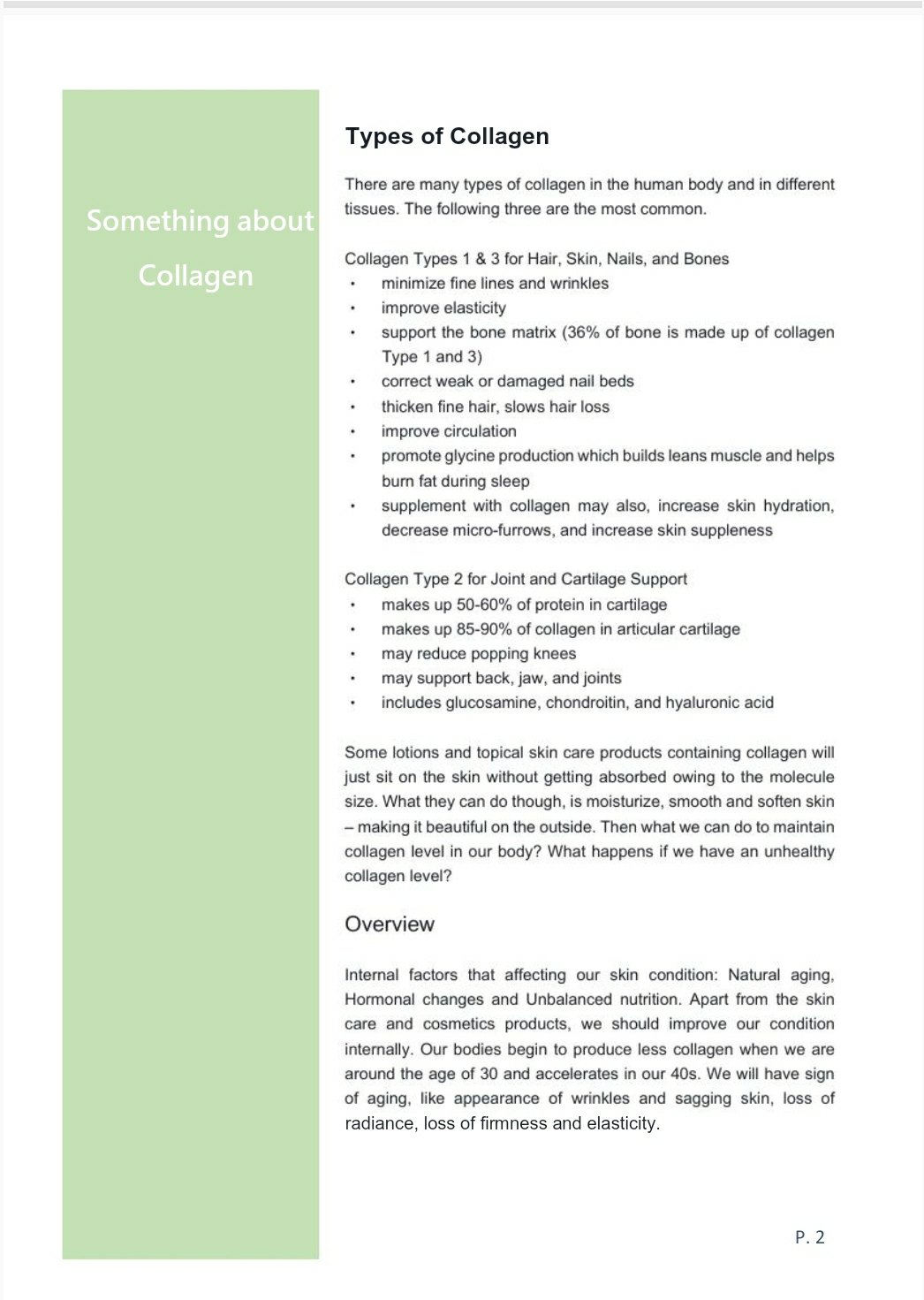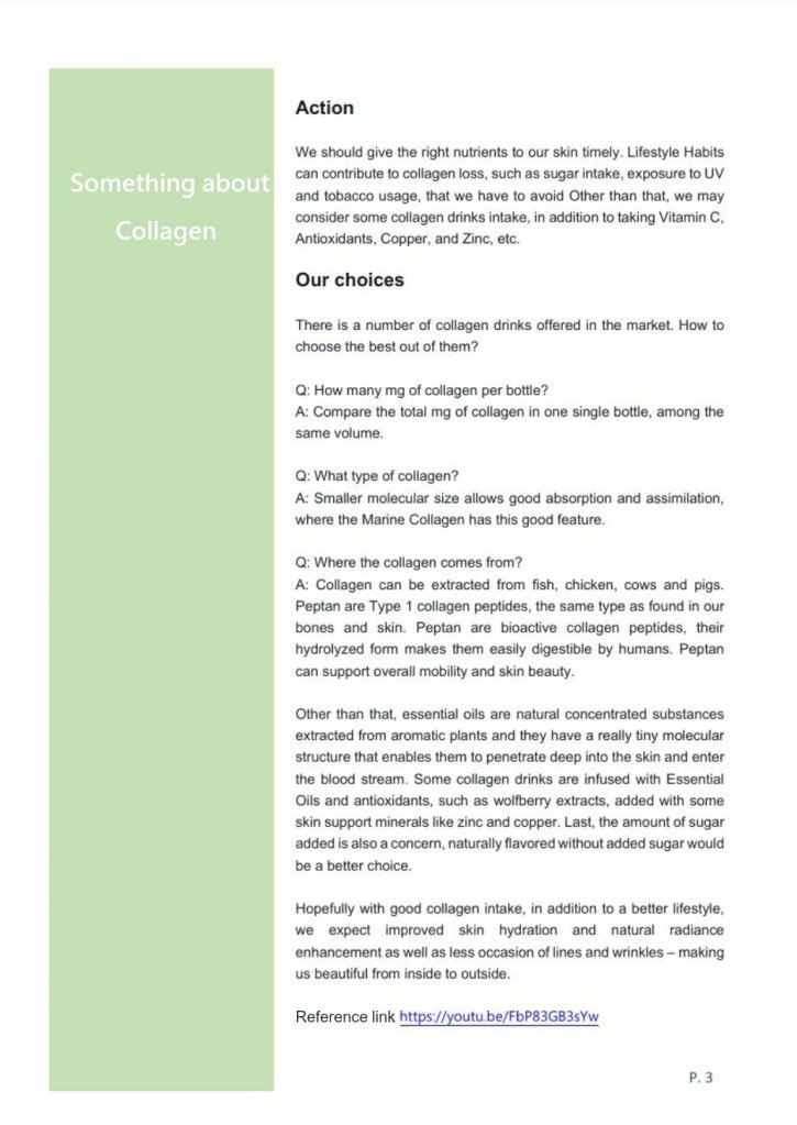 Hopefully with good collagen intake, in addition to a better lifestyle, we expect improved skin hydration and natural radiance enhancement as well as less occasion of lines and wrinkles – making it beautiful from inside to outside.