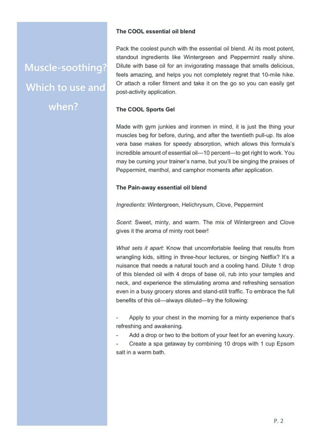 Pack the coolest punch with the essential oil blend. At its most potent, standout ingredients like Wintergreen and Peppermint really shine. Dilute with base oil for an invigorating massage that smells delicious, feels amazing, and helps you not completely regret that 10-mile hike. Or attach a roller fitment and take it on the go so you can easily get post-activity application.