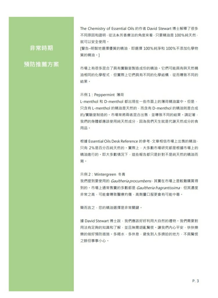 The Chemistry of Essential Oils的作者David Stewart博士解釋了很多不同原因和證明,從法系芳香療法的角度來看,只要精油是100%純天然,就可以安全使用。
