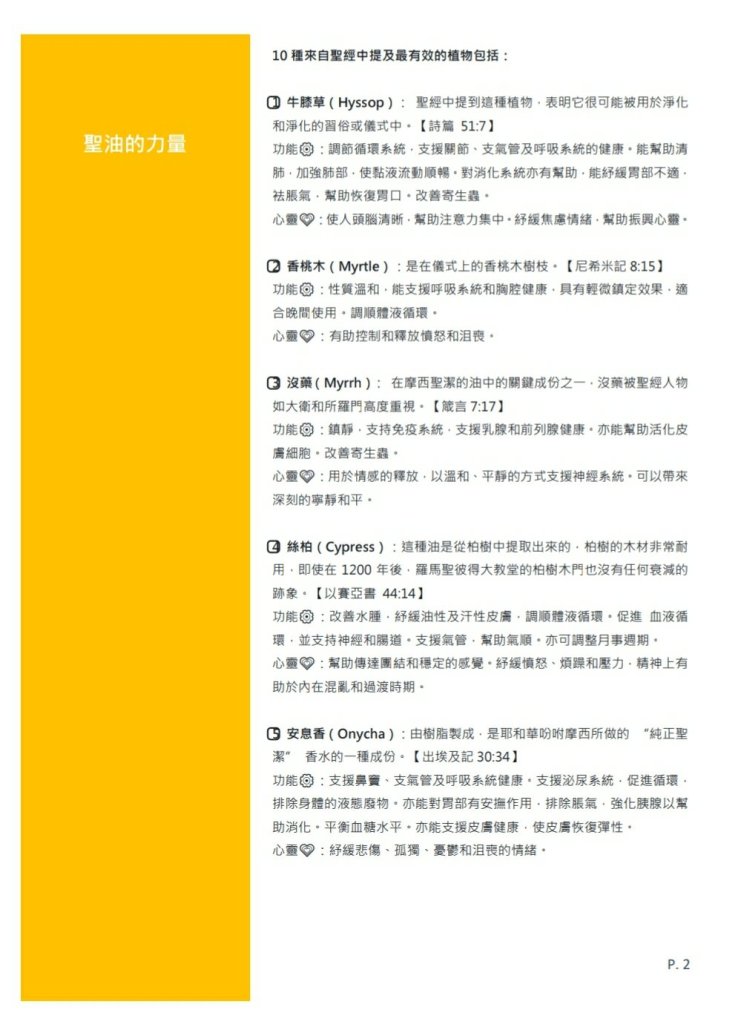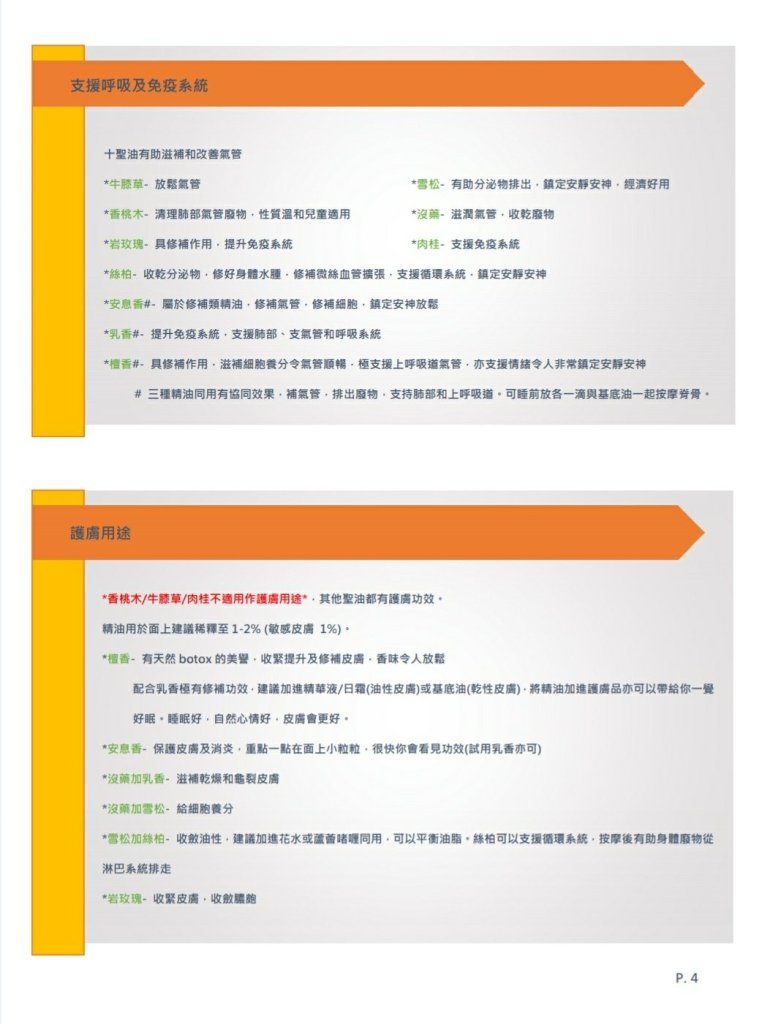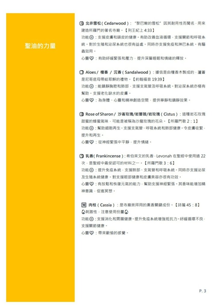 *香桃木/牛膝草/肉桂不適用作護膚用途*,其他聖油都有護膚功效。