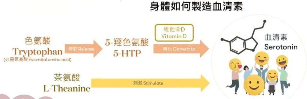 我們身體需要血清素,它是一種神經傳遞物質幫助傳遞快樂的信息,幫助提升專注,亦是睡眠激素 – 即時褪黑色素的前體。在血清素不足的情況下,身體亦不能製造褪黑色素。這樣會引起睡眠障礙,影響情緒和免疫力。