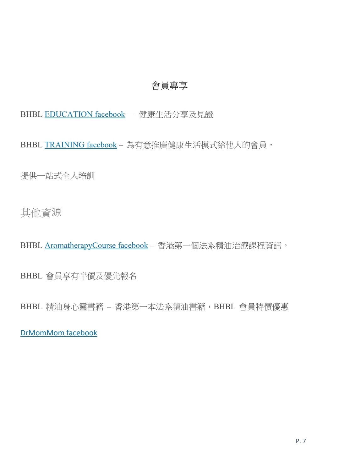BHBL TRAINING facebook – 為有意推廣健康生活模式給他人的會員,提供一站式全人培訓