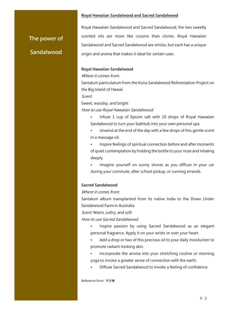 Royal Hawaiian Sandalwood and Sacred Sandalwood, the two sweetly scented oils are more like cousins than clones. Royal Hawaiian Sandalwood and Sacred Sandalwood are similar, but each has a unique origin and aroma that makes it ideal for certain uses.