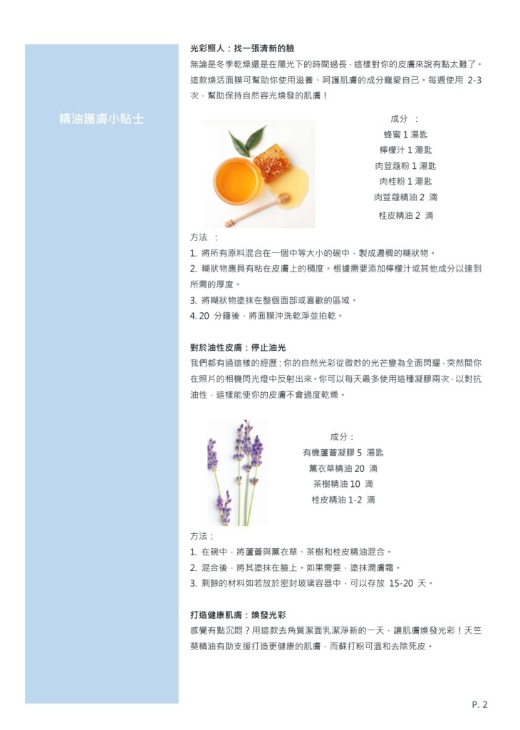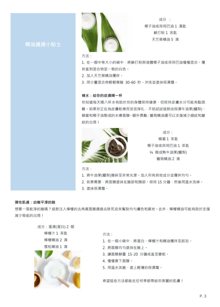 注意:在將精油塗抹在臉上之前,請先在一小塊皮膚上進行測試,以確保你沒有不良反應。