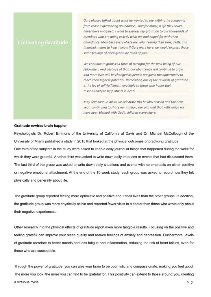 Gary gave everything to better mankind, and thousands are reaping the benefits of our tiny beginning that has grown into a global force for good. So many of us are experiencing a lifestyle of health and abundance, but with that comes a responsibility to show our gratitude by helping others in need, showing them a better way, and sharing [the oils].