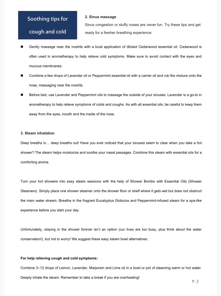 If steaming water is not readily available to you, we’ve got an even easier method to try. Apply 1–6 drops of Lime, Lemon or Peppermint essential oil to a tissue or handkerchief and inhale occasionally up to three times daily.