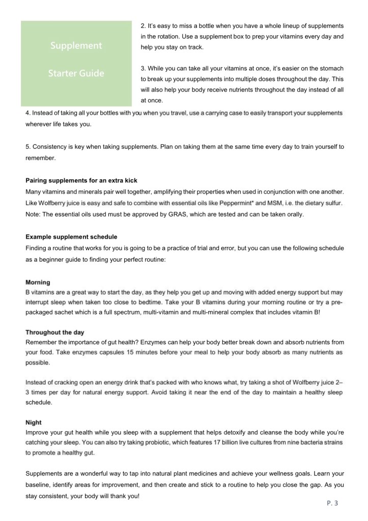 Many vitamins and minerals pair well together, amplifying their properties when used in conjunction with one another. Like Wolfberry juice is easy and safe to combine with essential oils like Peppermint* and MSM, i.e. the dietary sulfur.