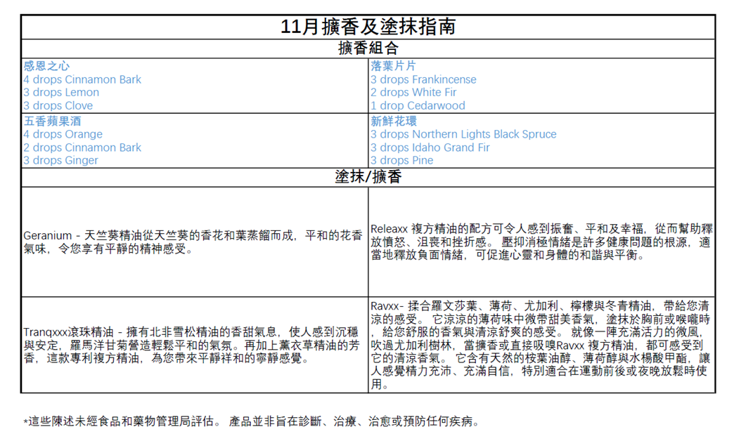 *聲明未經食品和藥物管理局評估。精油產品並非旨在診斷、治療、治愈或預防任何疾病。所用精油必須經GRAS批准及檢測才可內服。