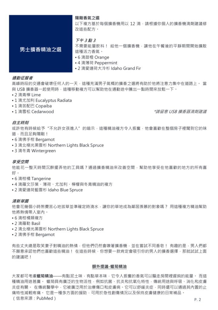 以下複方基於每個擴香機用以 12 滴,請根據你個人的擴香機滴劑建議修改這些配方。