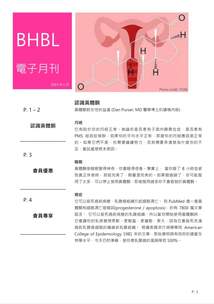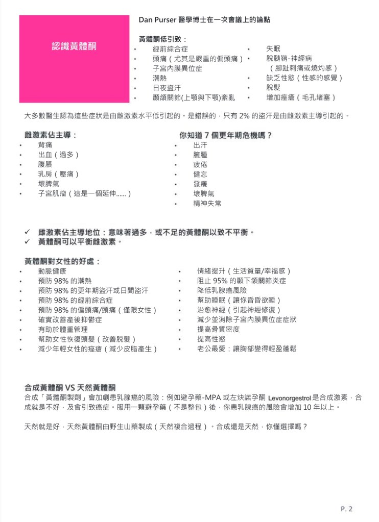 黃體酮對女性的益處 (Dan Purser, MD醫學博士的講稿內容)