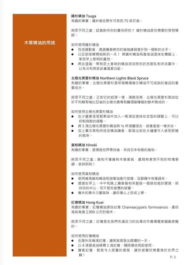 有趣的事實:紅檜精油源自台灣 Chameacyparis formosensis,產自海拔高達 2,900 公尺的樹木。