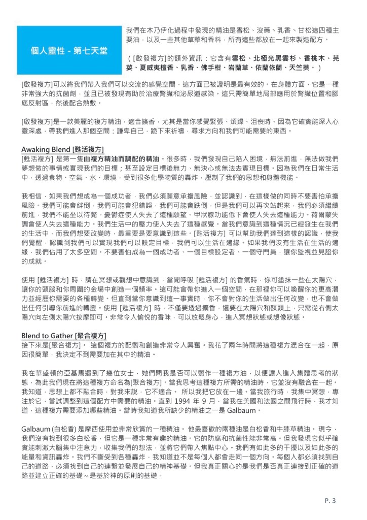 此鏈結帶有精油公司創辦人對強化個人靈性精油套裝的個人解釋