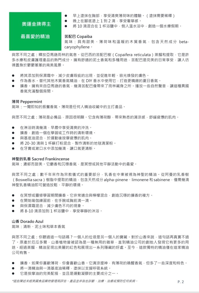 - 與基底油混合,於運動後按摩疲憊的肌肉。