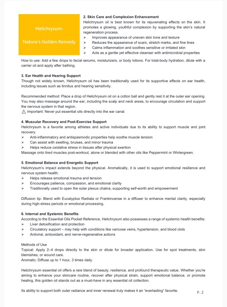 According to the Essential Oils Pocket Reference, Helichrysum also possesses a range of systemic health benefits: