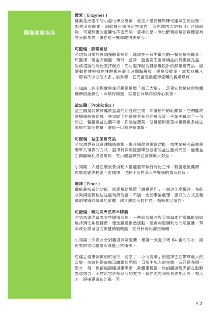 小知識:許多保健專家把腸道稱做「第二大腦」,足見它對情緒與整體健康的重要性。照顧好腸道,就是在照顧你的身心狀態。