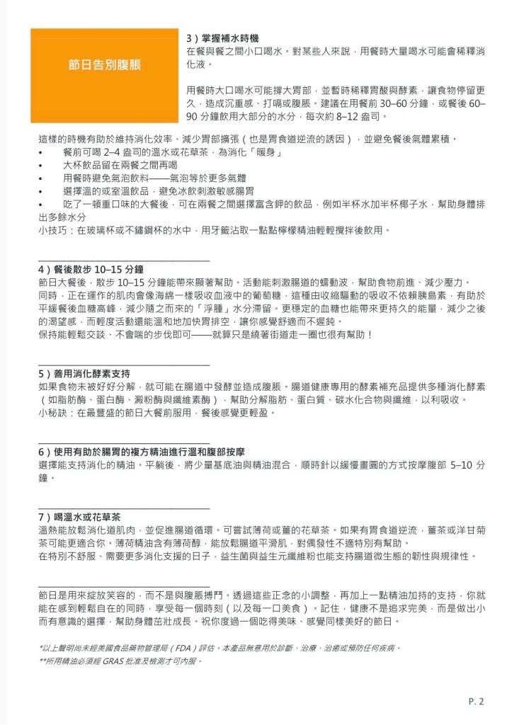 節日是用來綻放笑容的,而不是與腹脹搏鬥。透過這些正念的小調整,再加上一點精油加持的支持,你就能在感到輕鬆自在的同時,享受每一個時刻(以及每一口美食)。記住,健康不是追求完美,而是做出小而有意識的選擇,幫助身體茁壯成長。祝你度過一個吃得美味、感覺同樣美好的節日。